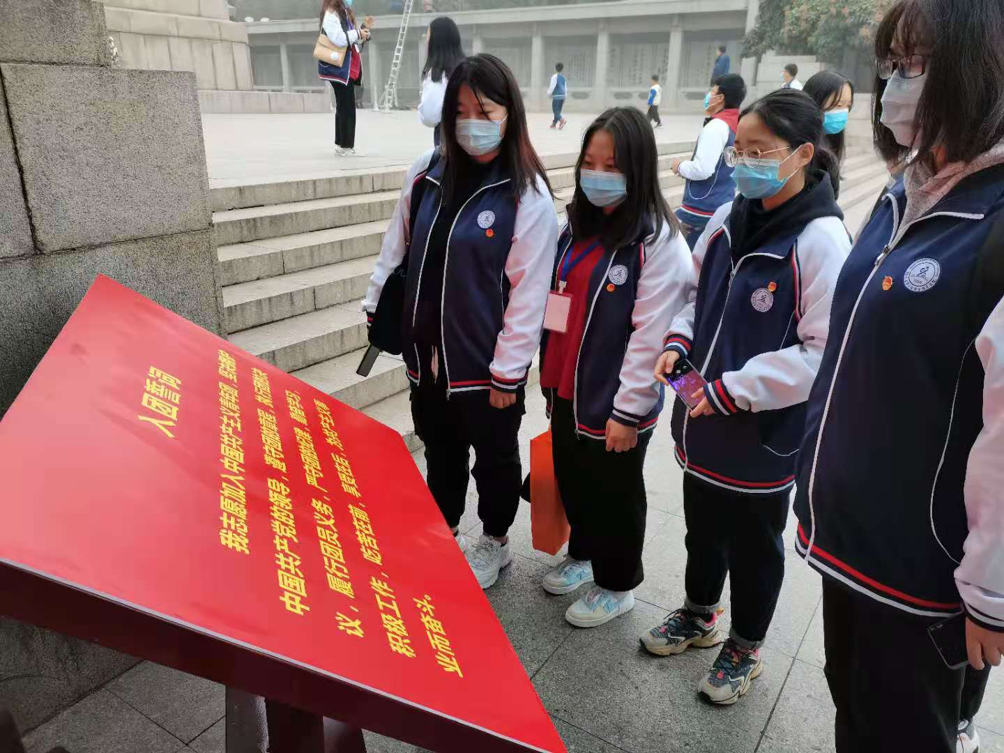 活动过程中,大家分别参观了淮海战役碑林、淮海战役烈士纪念塔、淮海战役烈士纪念馆、淮海战役总指挥雕像等著名景点。整个参观过程不仅让同学们回顾了整个淮海战役的过程,也让同学们更加深切地感受到解放战争时期人民解放军在广大人民群众的帮助下,浴血奋战、英勇无畏的革命精神,尤其是走在气势雄伟、庄严肃穆的纪念馆内,展览馆、书画馆、影视馆、全景画馆,文物、实物、文献、图片……历史仿佛把我们带到了血雨腥风、炮火连天的解放前夕,大家通过一张张宝贵的历史图片、革命文物,身临其境淮海战役艰难而光辉的历程,感受革命先烈们忠于信仰的风范、守纪如铁的作风、决战决胜的精神。浓厚壮烈的史诗感染了每一位参观的同学,让大家感受到“历史是记忆的生命”这句话的深刻意义。