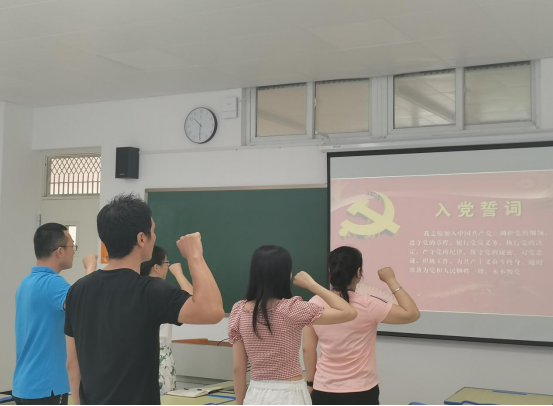 会上,马春梅副书记首先带领全体党员学习建党百年党史学习之建党篇。内容有:五四运动,唤醒群众;首译宣言,传播真理;酝酿建党,各地响应,一大首聚,开天辟地;反地反封,工运高潮。紧接着讨论观看建党百年大会感想,大家踊跃发言,深情回顾党的百年奋斗历程,畅谈观看感受,结合自身工作经历表达了听党话、感党恩、跟党走的坚定决心,展望了党和国家发展的美好前景。随后,讨论了关于学生入党积极分子的章程和要求,成立了有关管理八级岗位的聘任领导小组。最后全体党员庄严举起右拳,以饱满的精神、昂扬的斗志、铿锵有力的誓词再次向党作出庄严承诺,进一步坚定理想信念,牢记责任使命。